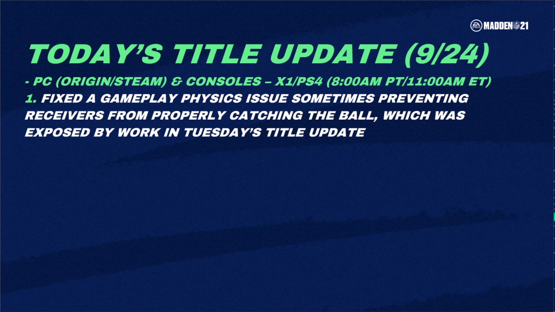 ♦Patch that affects gameplay and adds new abilities went out for Madden NFL 21.
